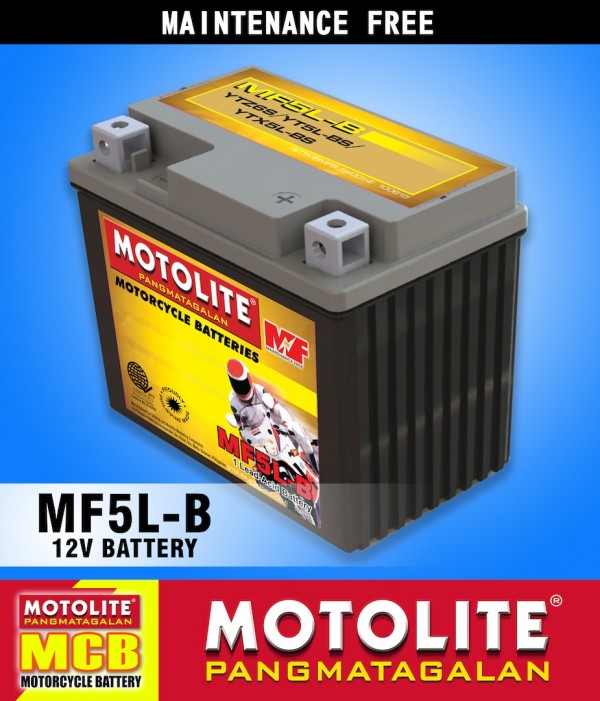 *No WARRANTY Maintenance Free MotorCycle Battery. All products sold on batterymasteronline.com are 100% genuine and have different warranties as per the respective product specification. 12V. 5 AH Battery For MotorCycle. Motolite is all about providing quality batteries for vehicles. Each Motolite motorcycle battery is equipped with the same trusted technology used in Motolite's automotive batteries. You get the same quality, performance, satisfaction, and reliability every time. We spared no expense in making the kind of motorcycle battery that provides the best value for your money. .